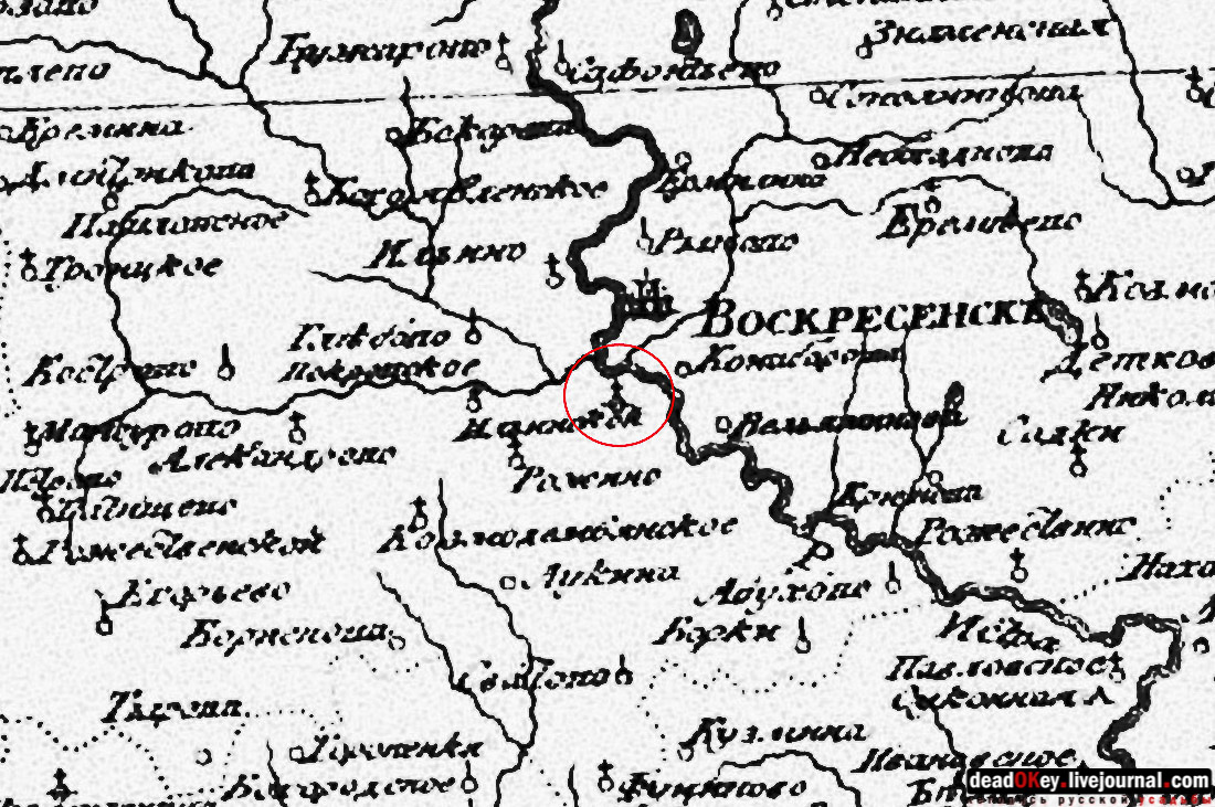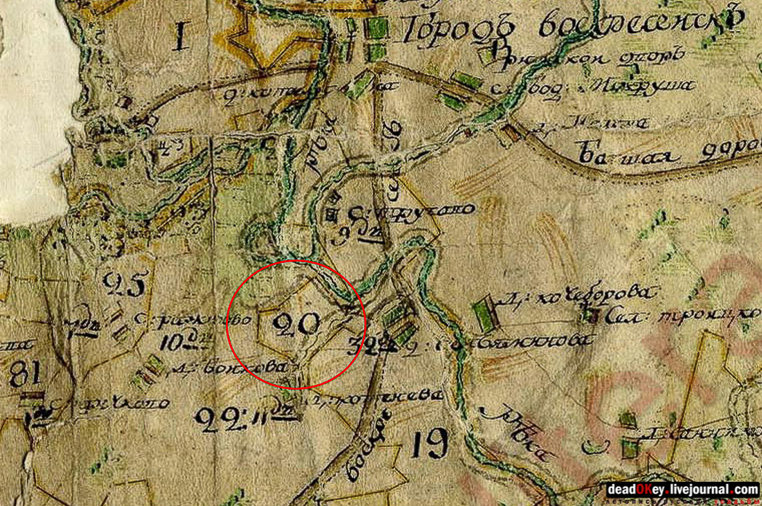 XVIII век. Схемы межевания 18 века по В.С.Кусову, Воскресенский уезд (фрагмент). |