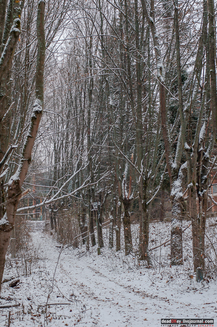 20. Административный корпус санатория построен после войны и расположен параллельно оврагу, вдоль которого можно выйти к городищу над Истрой. |