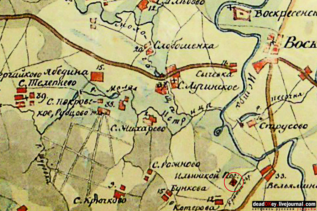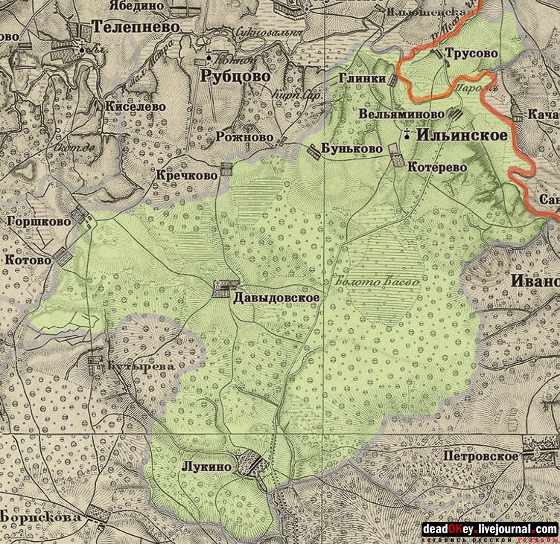 1918 год. Карта прихода Ильинской церкви села Ильинское-Городище. |