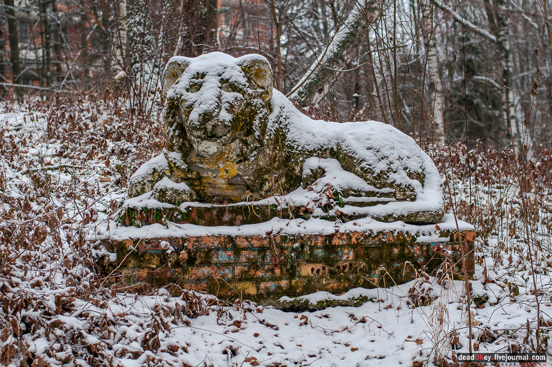 15. Между ним и задним фасадом главного здания пансионата находится примечательная скульптура льва. |