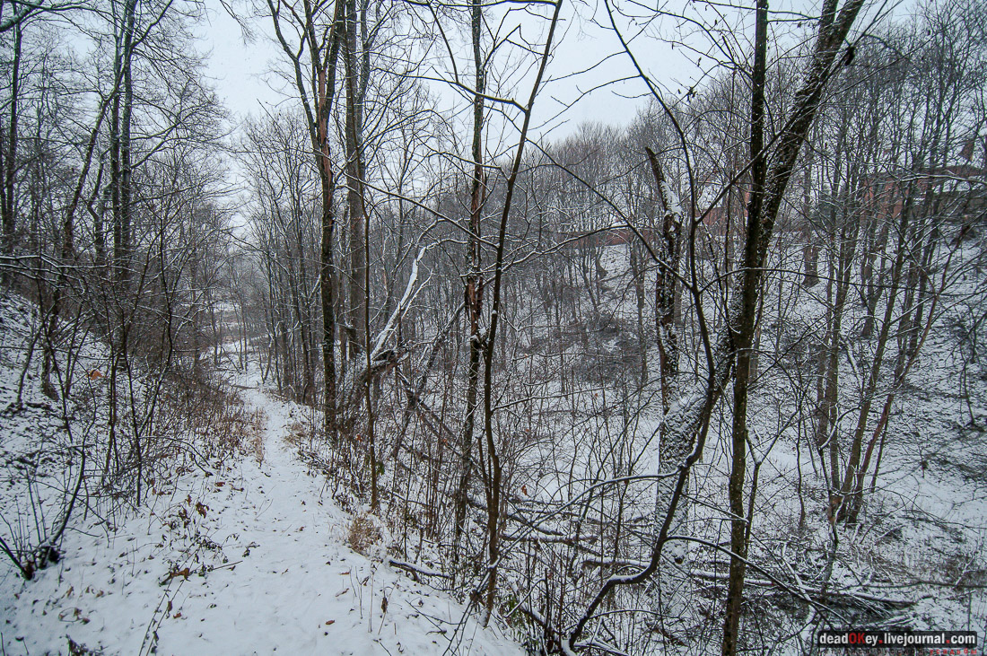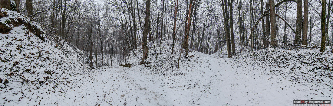 42. От площадки можно спуститься вдоль оврага к пойме реки Истра. |