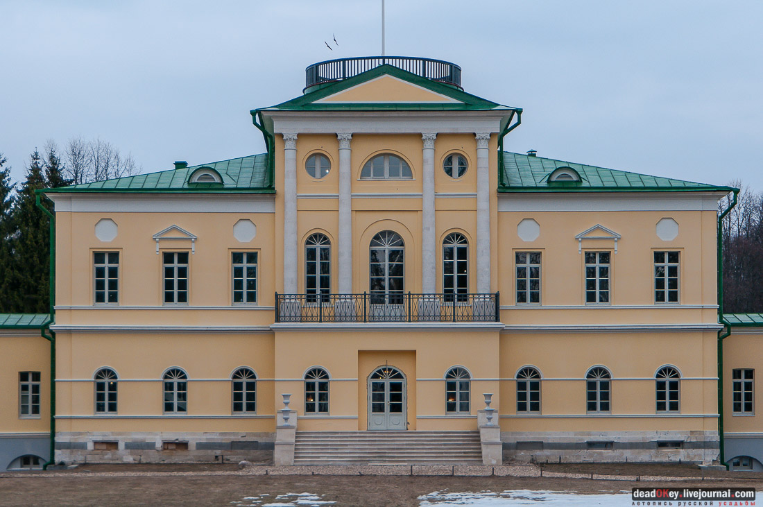 Главный дом усадьбы – характерный памятник усадебной архитектуры эпохи классицизма, автором проекта здания считается Джакомо Кваренги (1744-1817).