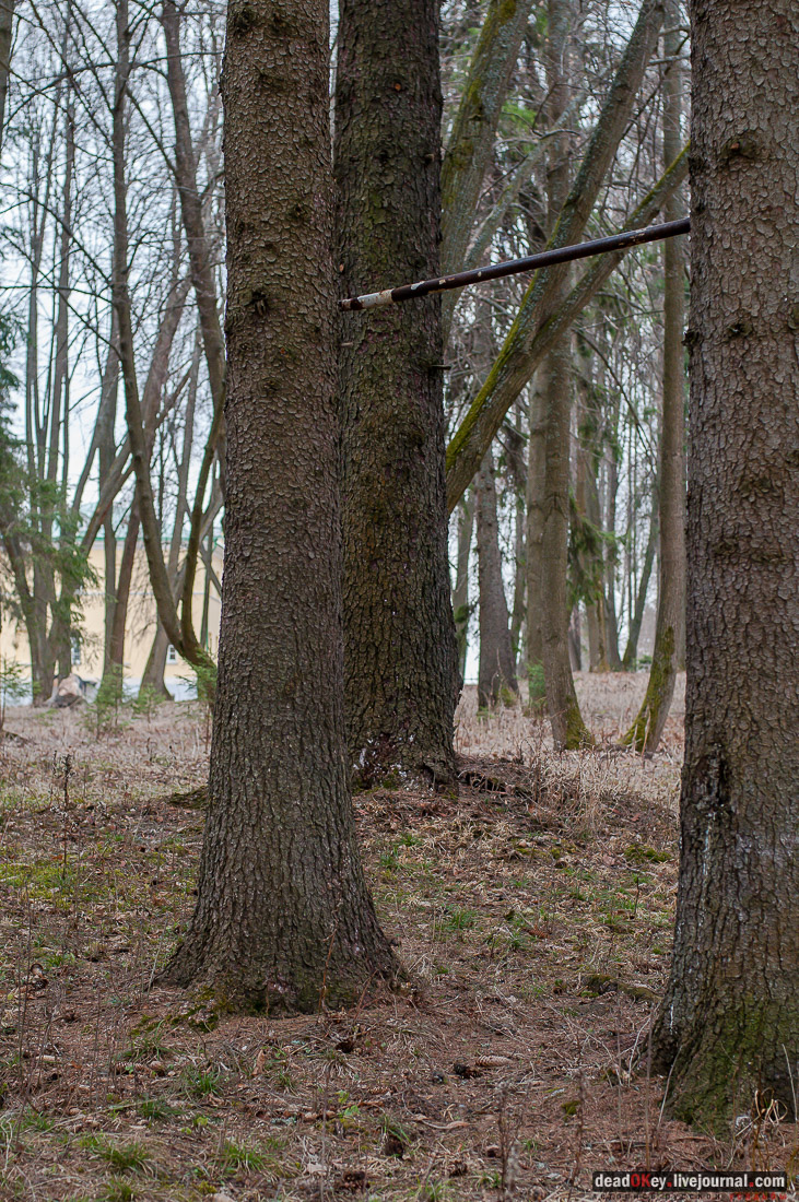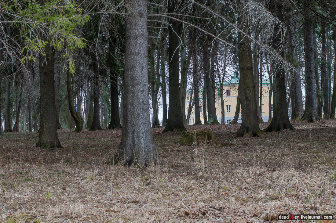 24. Еще в послереволюционное время был цел павильон-руина, характерная дань романтическим вкусам, парковая постройка белого камня, запечатленная на рисунке, сохранившемся в Тверском музее. Других украшений, вероятно, не было. Парковая затея "турник" - это уже из нашего настоящего. |