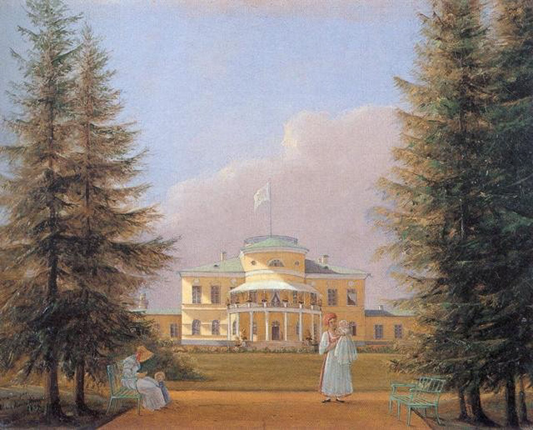 Куракин А.Б. Вид усадебного дома от главной аллеи, 1839-1840 годы. |
