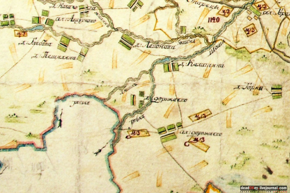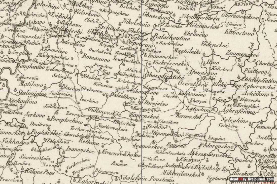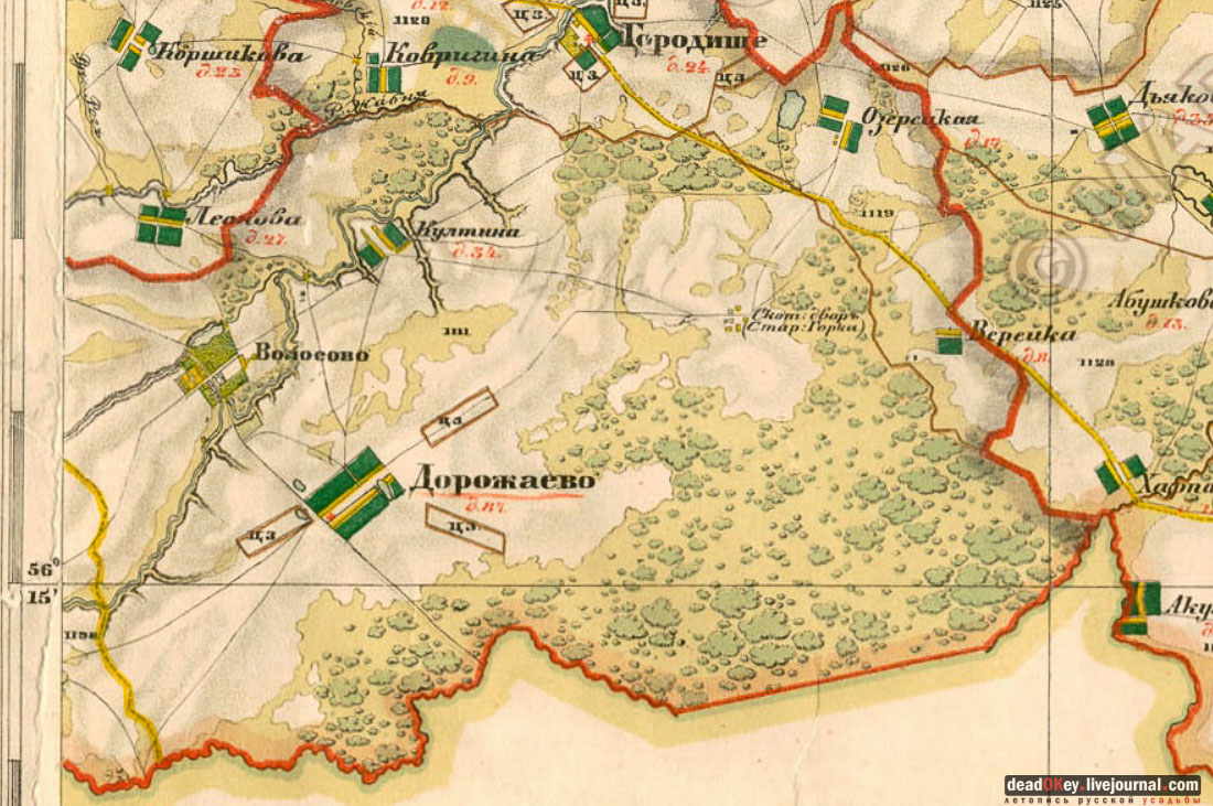 1850 год. В Дорожаево до 1930-х годов сохранялась одностолпная церковь, как писал А.Н. Греч, «куракинского» барокко. |