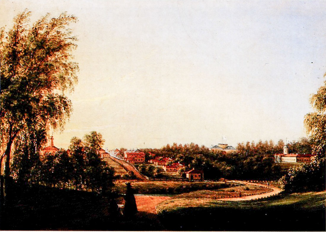 А.Б. Куракин. Вид главного дома и городка, выполненный с башни готического замка, 1839-1840 годы. |