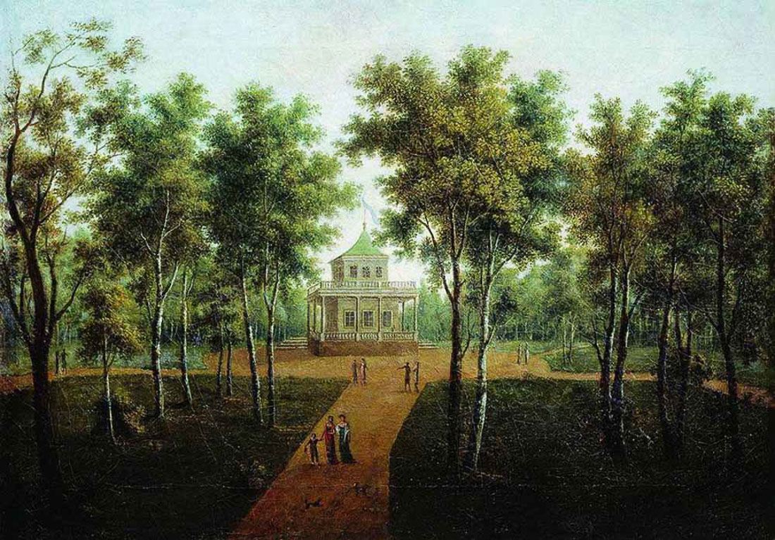44. Одна из росписей на тему серии пейзажей Причетникова и Филимонова с видами усадьбы Надеждино чудом сохранилась. Сравните с картиной ниже... |