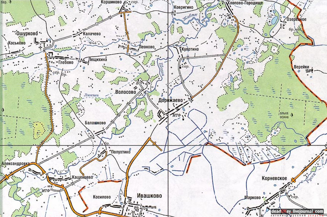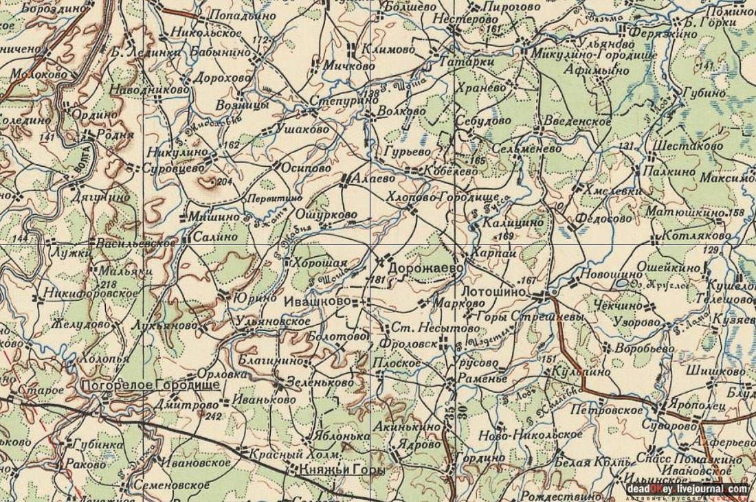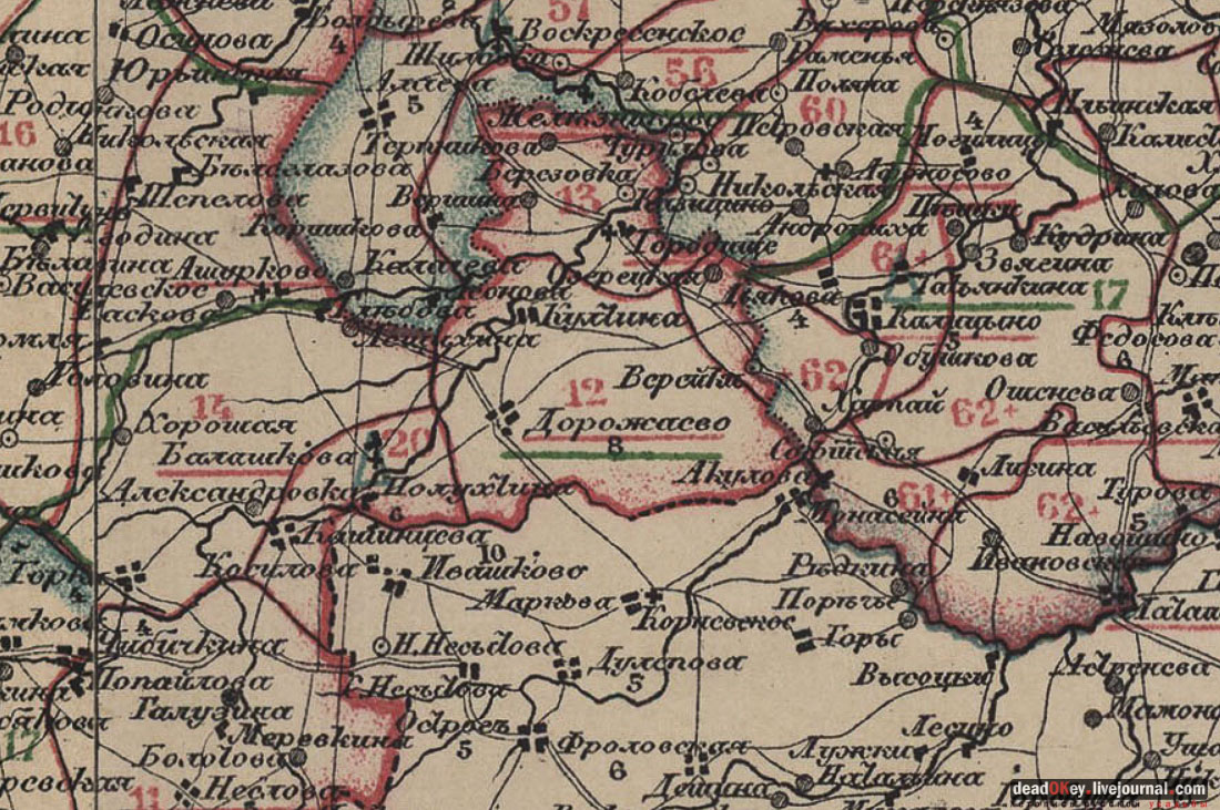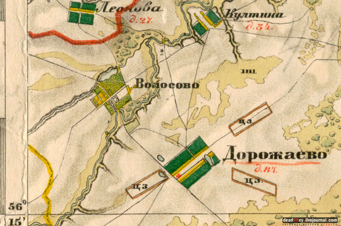 1938 год. Церковь в Дорожаево еще присутствует на плане. |