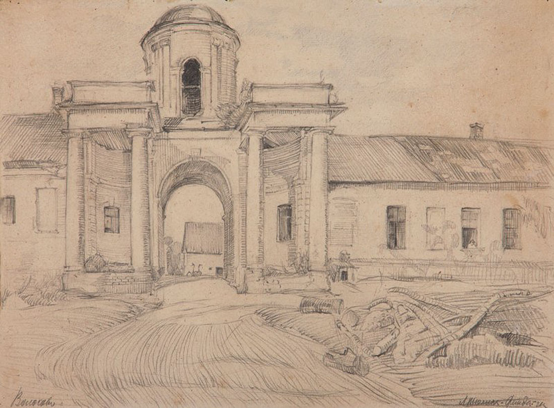 Волосово, хозяйственный двор. Рисунок из альбома Сергея Васильева, отсюда. |