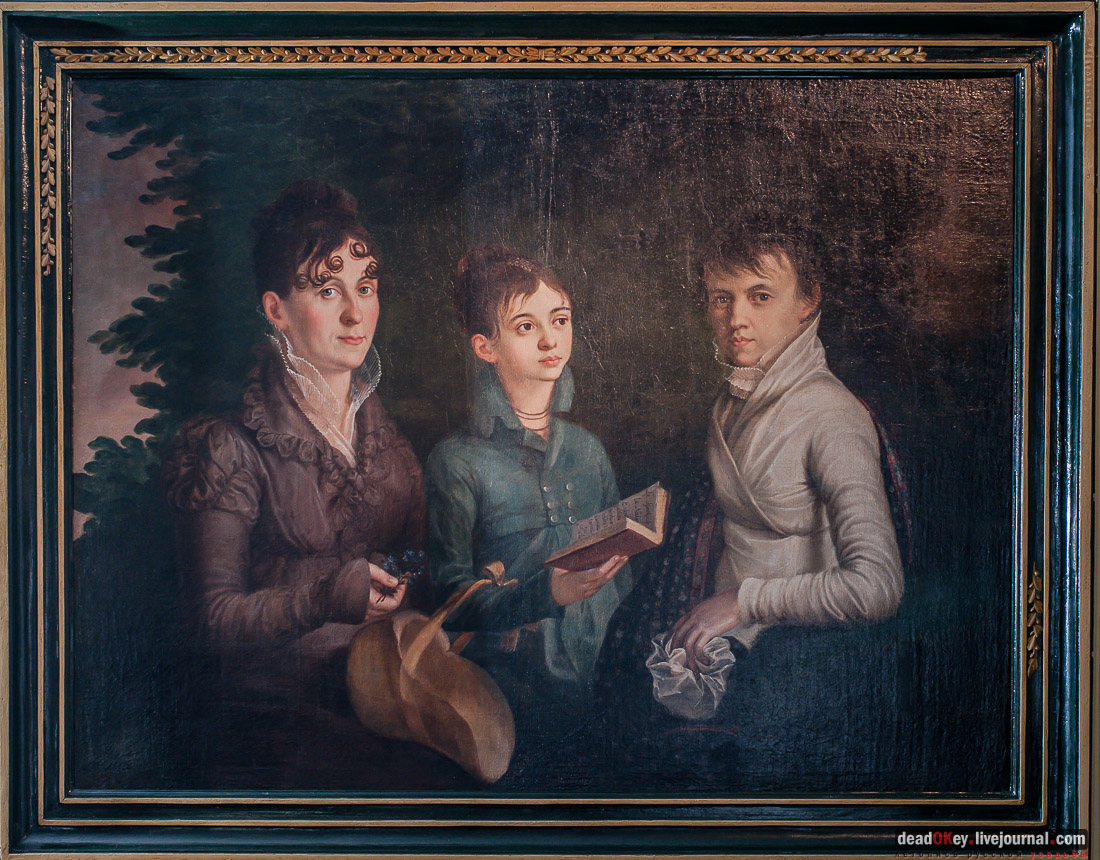 26. Портрет Евдокии Мещерской с дочерью Анастасией Мещерской (в замужестве Озеровой) и воспитанницей Елчаниновой, написан художником Ефимом Спажинским в 1807 году в Полоцке, предположительно во время паломнической поездки Мещерских и Елчаниновой к местам, связанным с Ефросинией Полоцкой. |
