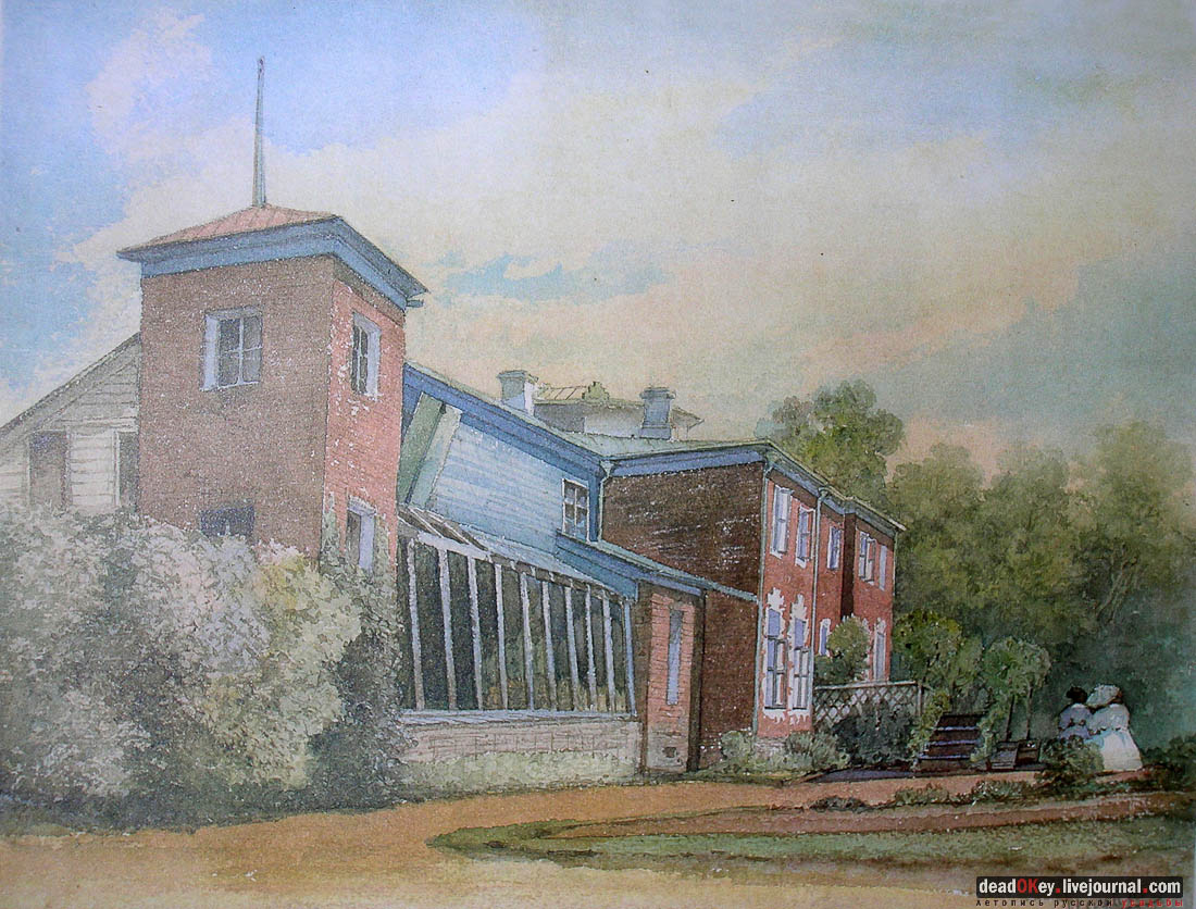 Акварель Нисевина "Дом со стороны зимнего сада". |