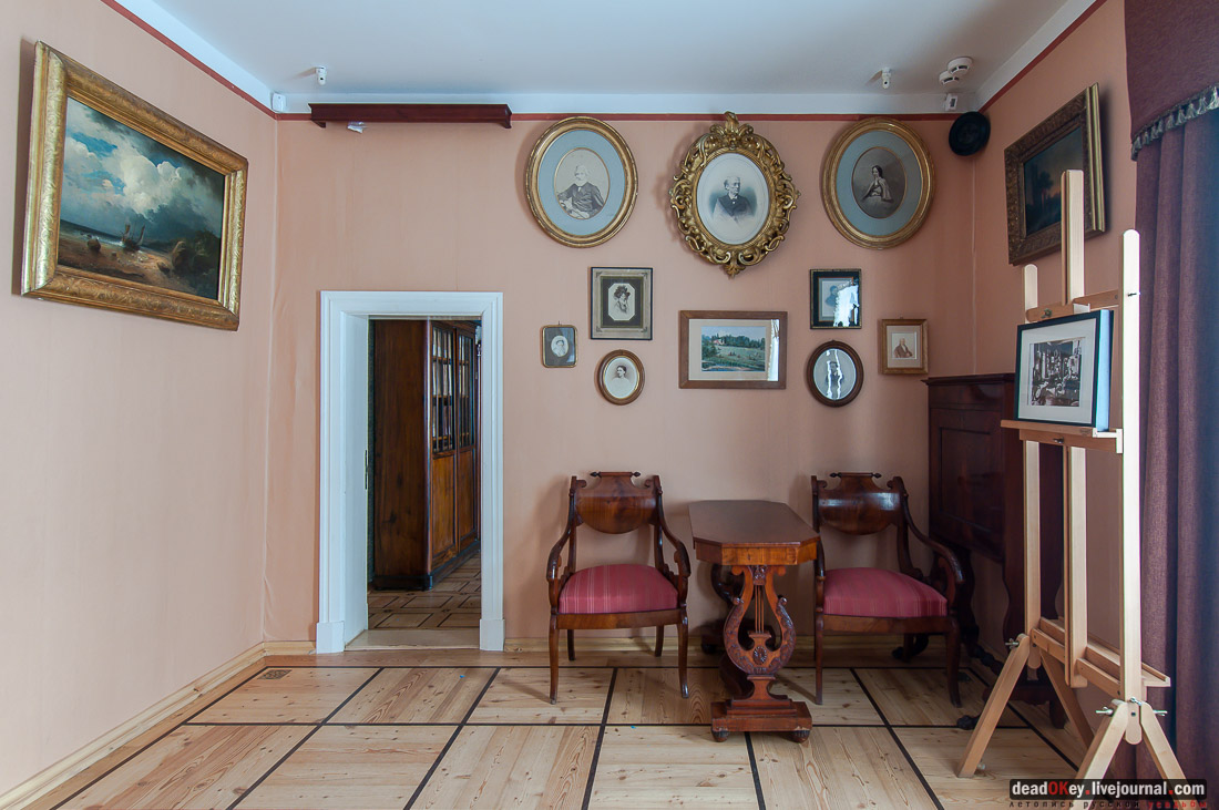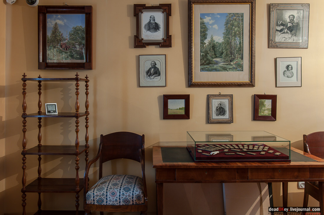 9. В комнате находятся портреты самых близких поэту людей. Среди них – фотографии младшей дочери Марии и сына Дмитрия, а на акварели И. Крихубера изображен Н.И. Тютчев, старший брат поэта, всякий раз спешивший ему на помощь в трудные минуты жизни. Все трое умерли незадолго до кончины самого Федора Ивановича. |