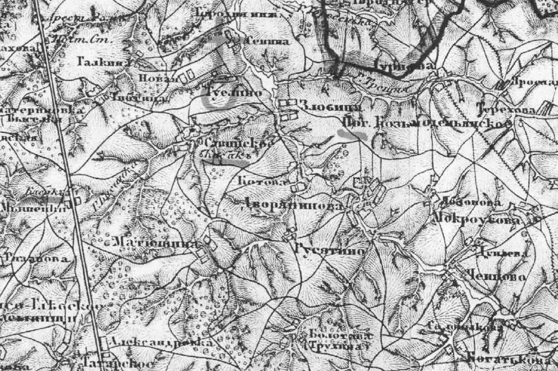 После смерти Болотова Дворяниново перешло во владение его старшего сына Павла. Однако, в середине XIX века усадьба перестала принадлежать потомкам великого паркостроителя и неоднократно меняла своих хозяев. В начале прошлого века имение принадлежало Надежде Дмитриевне Давыдовой, которая организовала на территории Болотовской усадьбы и прилегающих к ней площадях Спасо-Казанский женский монастырь. После прихода советской власти обитель была упразднена, а главный усадебный дом, который сменил несколько назначений, был умышленно подожжен и сгорел дотла. |