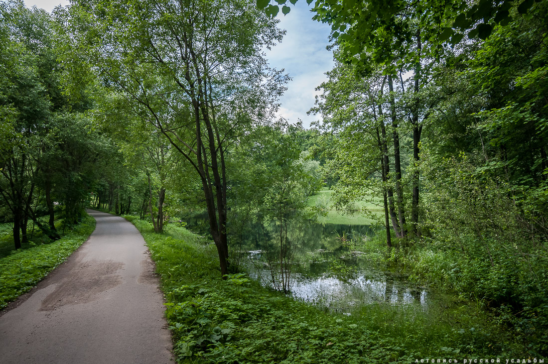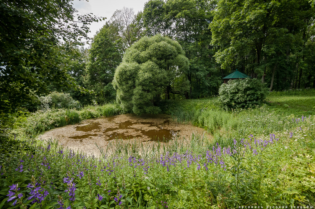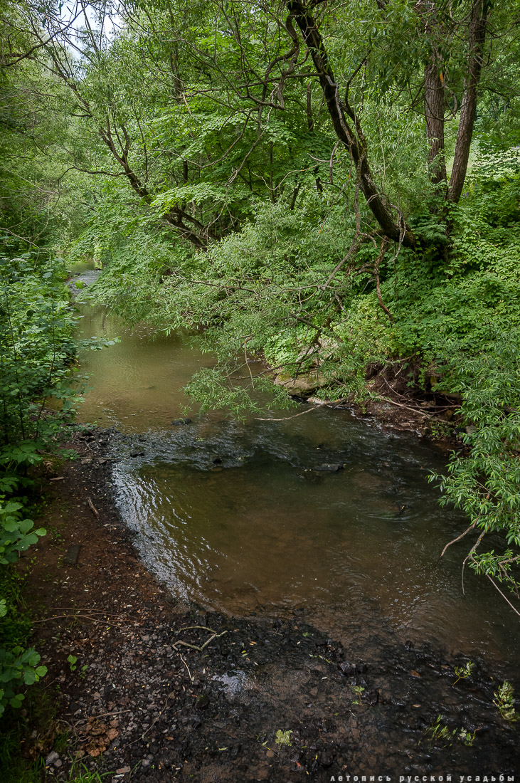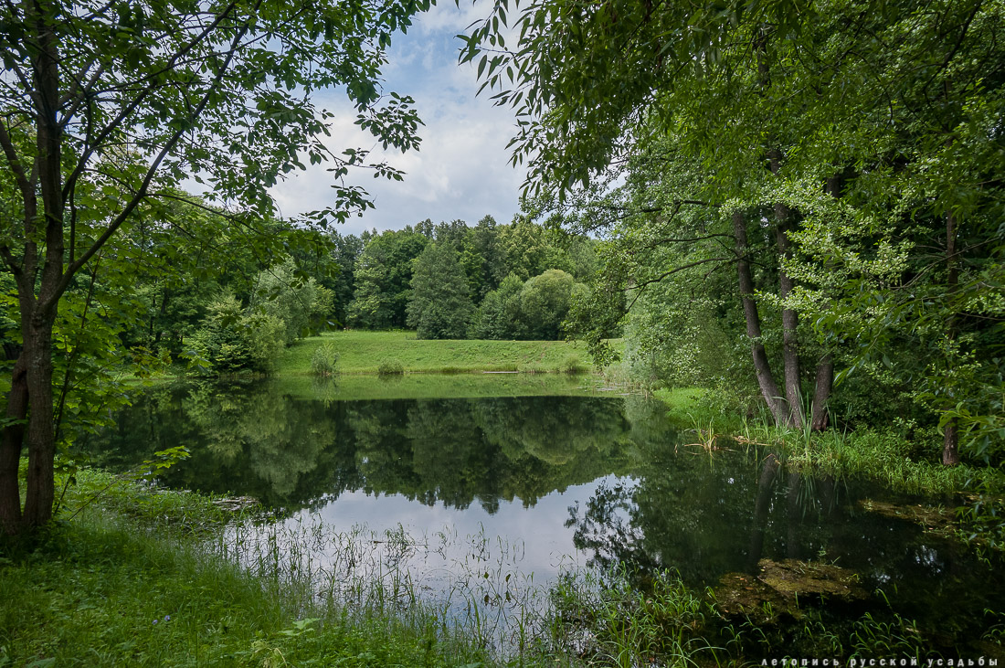 В Дворяниново существовало несколько прудов разного размера, у каждого из которых было свое назначение. Небольшой круглый прудик в южной части поместья Болотов называл «прадедовская сажелка» - он был декоративным, два других пруда были каскадными, первый пруд хозяева Дворяниново называли «ближним», а второй «дальним» или «банным» - в нем Болотовы проводили летние купания. |
