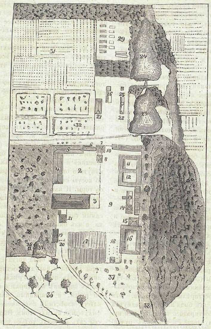 По возвращении в Дворяниново Болотов застал свое семейное гнездо в крайне печальном состоянии: старый дом обветшал, а его комнаты сильно устарели, хозяйственные постройки пришли в упадок, пруды заросли, а «душа» всего поместья – сад, зарос и вовсе не походил на уголок рая на земле. |