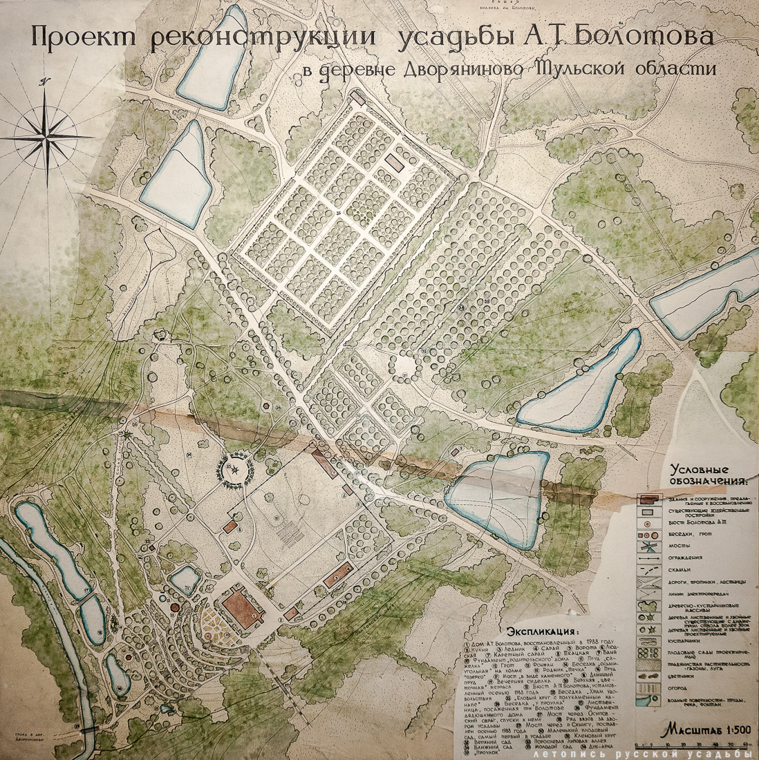 Болотов затеял перепланировку собственного сада. Хозяин имения собственноручно высадил здесь первые липы и яблони, многочисленные цветы и лекарственные растения. Он отдавал распоряжения о благоустройстве прудов и строительстве беседок, лично выполнял ландшафтные работы и держал выполнение всех дел в парке под особым контролем. |