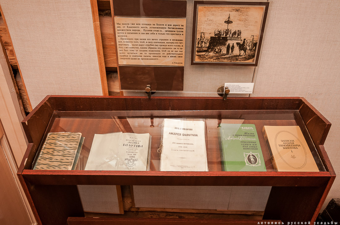 Возрождение усадьбы символично началось в 1988 году - к дате празднования 250-летия со дня рождения Андрея Тимофеевича. На фундаменте старого дома был построен новый дом, частично воссоздающий облик «семейного гнезда» великого ученого. В нем разместили мемориальный музей Болотова. |