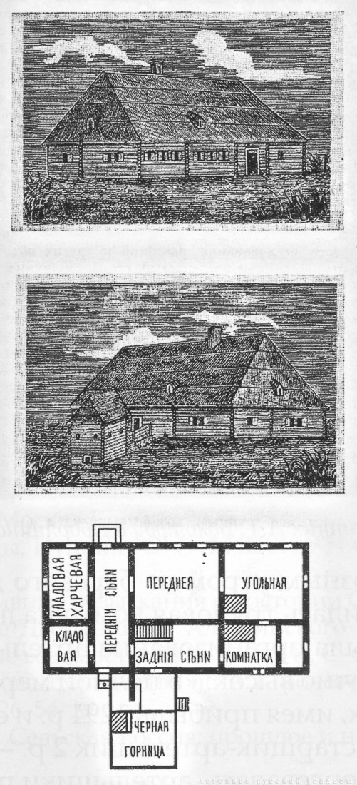 15. Внешний вид и план родительского дома. Рисунок и чертеж А.Т. Болотова. |