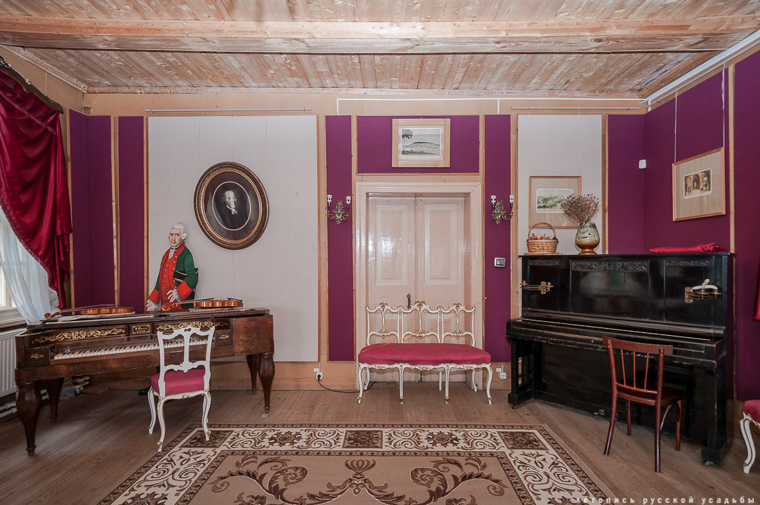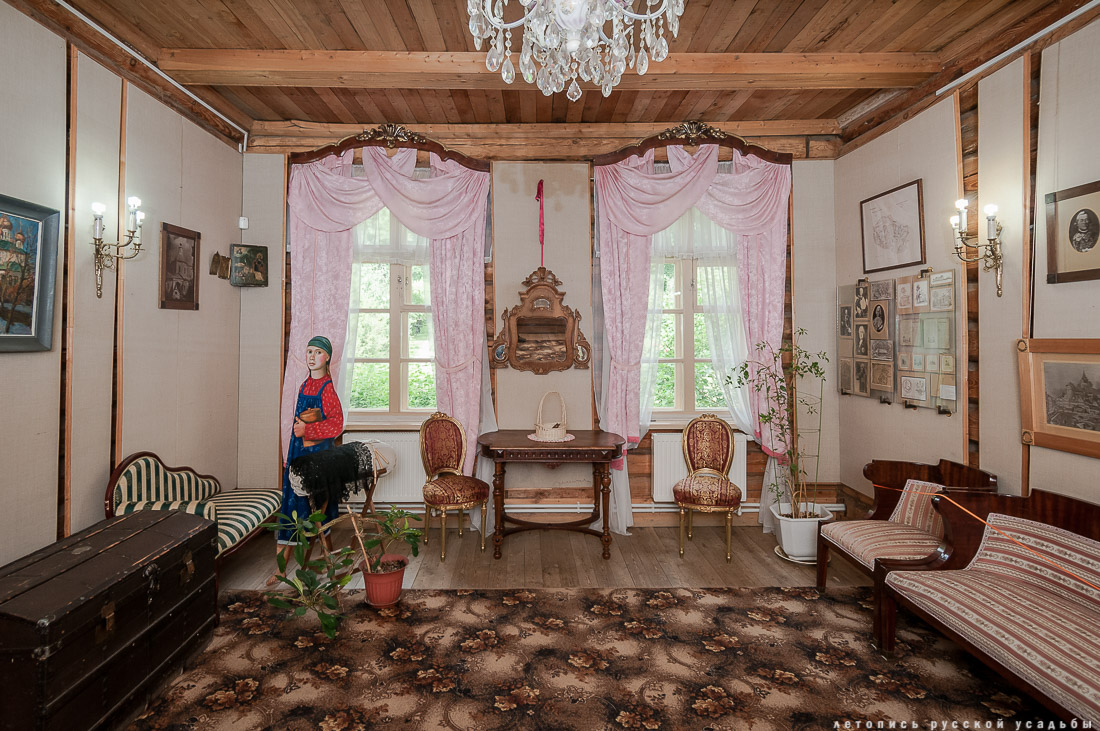 Первым делом Андрей Тимофеевич приступил к перестройке и благоустройству главного дома своего поместья. В доме прорубили большие окна, обустроили рабочий кабинет для нового хозяина поместья и организовали парадные залы для приёма гостей. Наблюдая за возрождением своего особняка, Болотов с радостью подчеркивал, что на месте старых и темных покоев перед ним предстают «веселые» интерьеры, способствующие счастливой жизни и притоку творческого вдохновения. |
