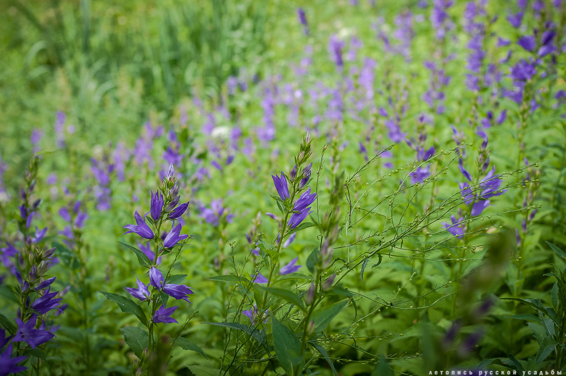 45. В конце июня - начале июля парк Дворяниново утопает в цветущих колокольчиках. |