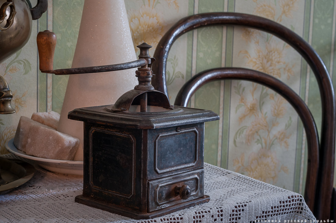 32. Самовар, банка из-под чая, кофемолка и обязательный атрибут каждого чаепития в семье Павловых - сахарная голова. |