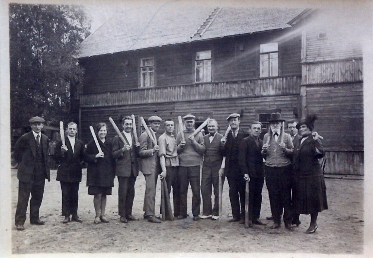 1920-е гг. И.П. Павлов и члены команды игроков в городки в Колтушах. |
