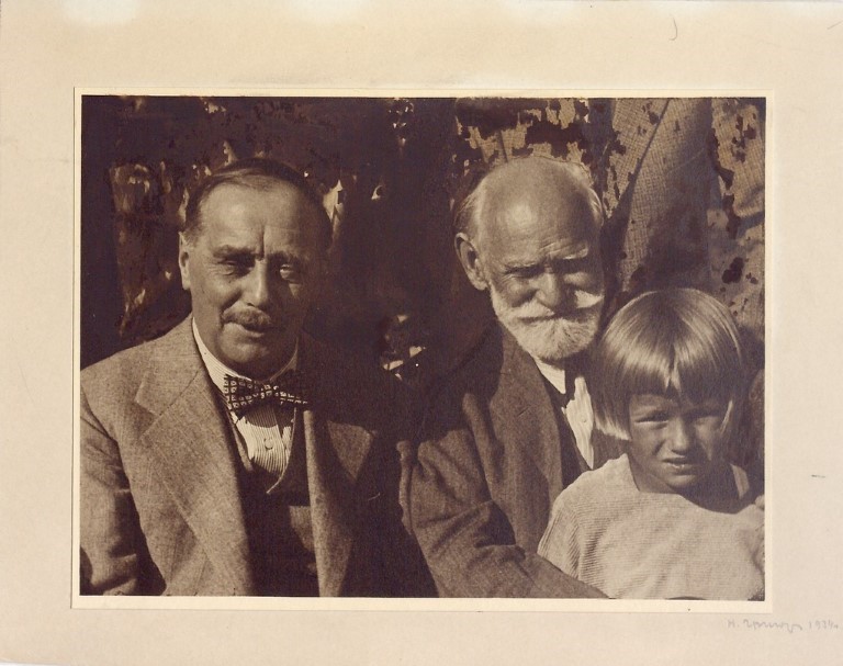 1924 г. И.П. Павлов, Г. Уэллс и внучка Павлова Милочка. |