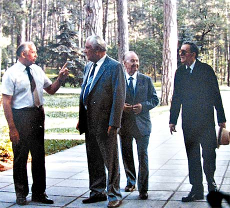 При Горбачеве охота и рыбалка стали непопулярны. А вот саму «Сосновку» главный демократ СССР посещал часто. В «шатре» праздновались дни рождения членов Политбюро. Любил Михаил Сергеевич и погулять в сосновом бору, размышляя над своими грандиозными проектами реформирования страны. Но это было еще не все, что «Сосновка» могла предложить генсеку в 80-х. Нижнюю часть территории госдачи в пять гектаров занимали сады и виноградники. Бывали тут президенты Украины Леонид Кравчук, Леонид Кучма, а также главы России Борис Ельцин и Казахстана Нурсултан Назарбаев... Им было интересно посмотреть и сталинский домик, и «шатер», с которыми была связана жизнь всех лидеров СССР, кроме Ленина. |
