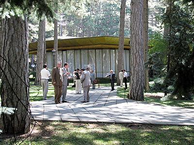 | Президенты Украины сюда приезжали в основном на экскурсии, пока не настал 60-летний юбилей Януковича и он не воскресил прежний статус «Сосновки» - места для встреч и гуляний с высокопоставленными гостями. Именно здесь в уникальном «шатре» среди хвойного леса прошла часть торжественных мероприятий в честь дня рождения президента. |